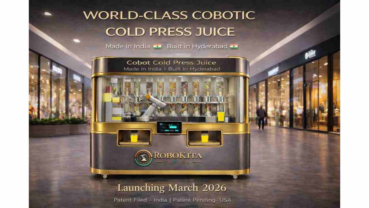 Hyderabad-based robotics venture Ankita Design Engineers (ADE) has announced the upcoming launch of RoboKita Fusion, a world-class cobot-powered cold press juice automation system scheduled for commercial rollout in March 2026.